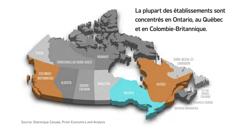 En 2022, l’industrie canadienne de la transformation des aliments et des boissons comptait environ 13 150 établissements, contribuait 35 G$ au PIB du Canada, et employait directement environ 300 000 personnes. Environ 94 % des entreprises ont moins de 100 employés.